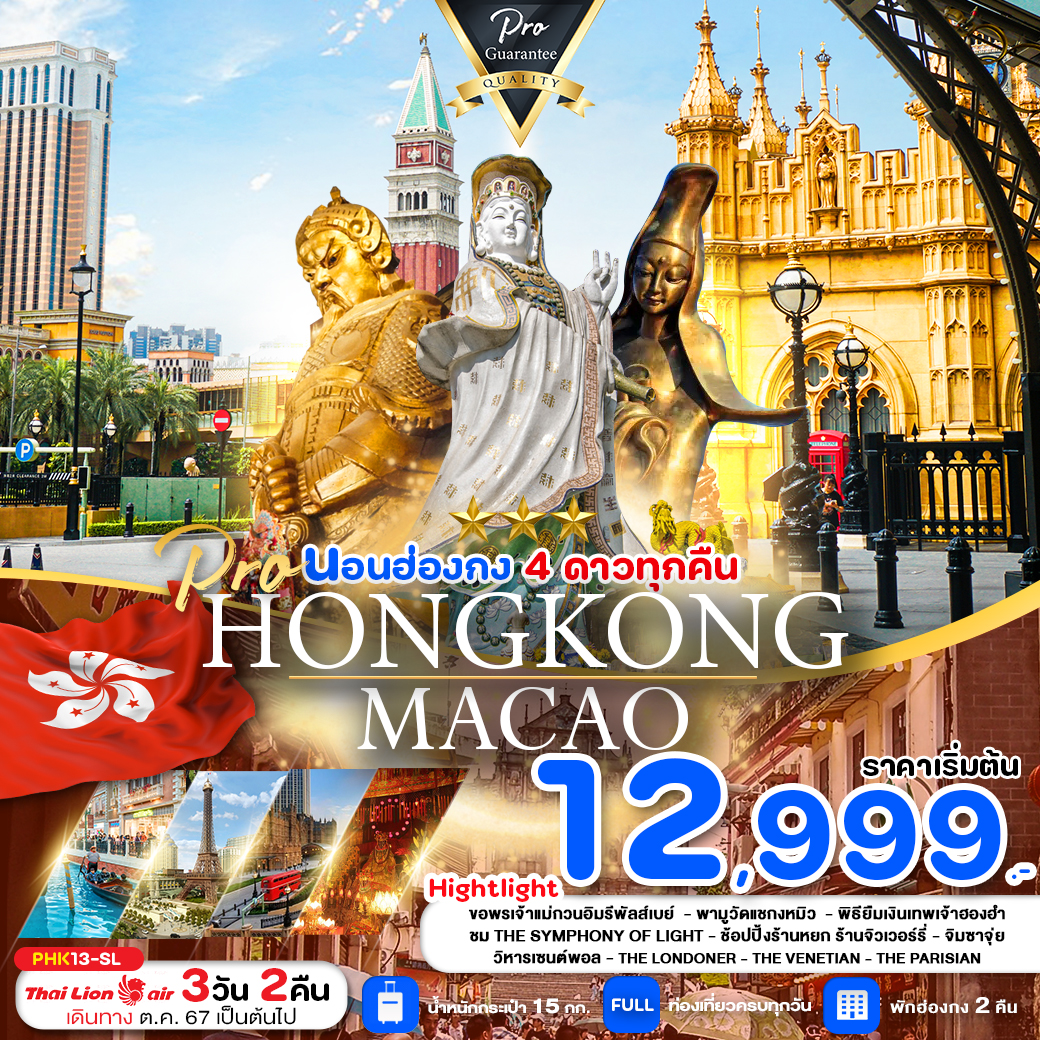 : PHK13-SL ฮ่องกง สายมู ไหว้พระ 3วัน2คืน OCT24-MAR 2